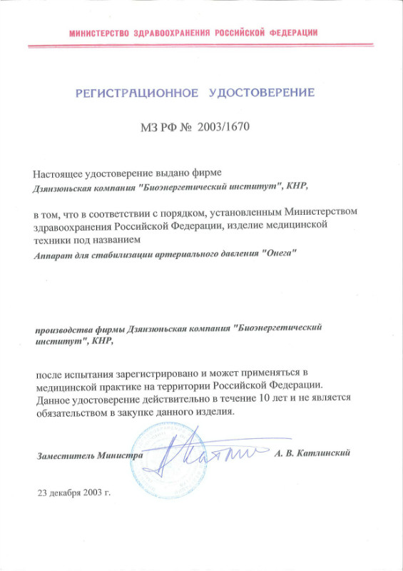 Во время использования аппарата «Онега», пациенты уменьшают или вовсе прекращают прием лекарств гипотензивного действия. Для людей страдающих гипертонией первой степени, аппарат можно использовать 1-2 раза в день. Давление крови может быть нормальным и сбалансированным после 2-3 недель лечения, а прием лекарственных препаратов практически прекращен. Уровень эффективности применения аппарата «Онега» при гипертонии 1 степени — 98%.